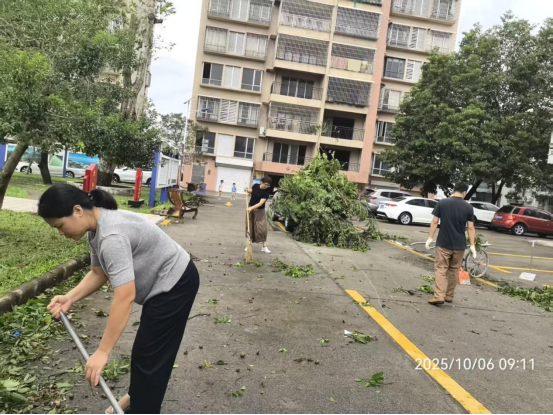 三、全员联动,恢复河道整洁秩序。自10月6日起,办公室牵头对所部公共区域开展“清积水、扫杂物、除落叶”专项清扫行动,有效改善单位整体环境面貌。各站点采用人工搬运与机械辅助相结合的方式,同步推进河道障碍物清理工作,集中清除倒伏树木、断枝、垃圾等漂浮物,避免堵塞河道影响行洪,切实守护运河水质安全。针对沿岸被台风损毁的护栏网、警示牌,第一时间进行重新安装与加固,确保河道防护设施功能恢复。目前,我所累计投入勾机、油锯等设备,清理河道及堤坝两侧倒伏树木100余棵、垃圾杂物约20吨,修复损坏护栏300米、警示牌50余块。