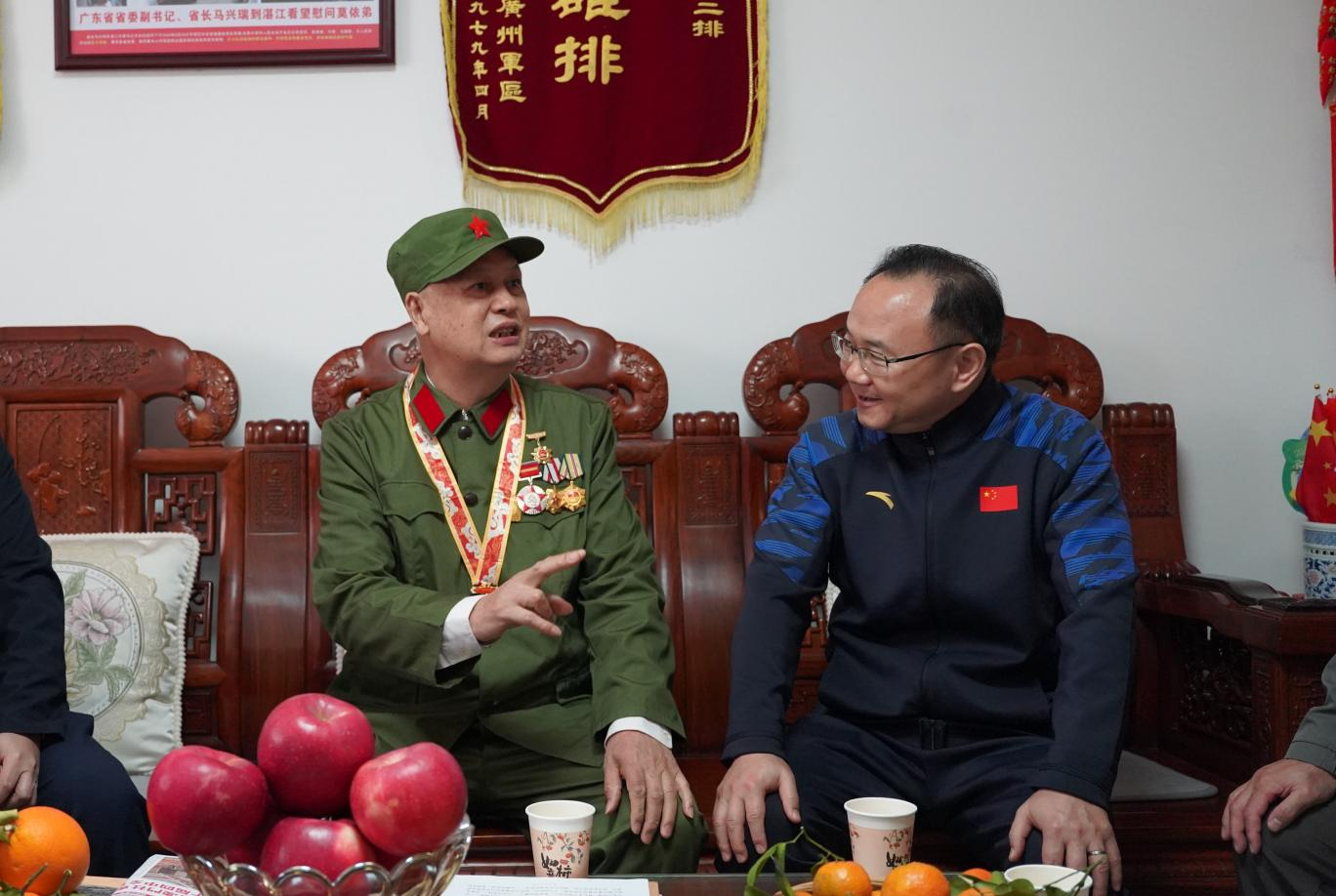 12月26日,省退役军人事务厅党组书记、厅长王创率队赴湛江走访慰问退役军人老党员和军休干部、一等功臣、烈属等优抚对象代表,把党的关心关爱传递给广大退役军人和其他优抚对象。
