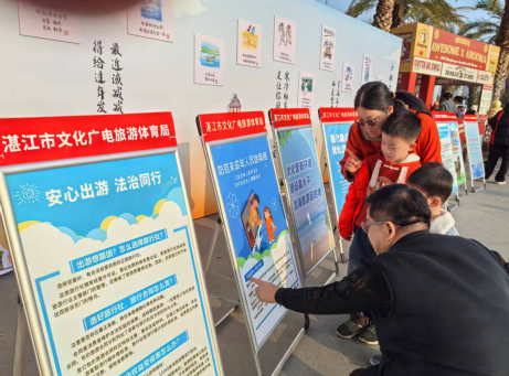 近日,湛江市文化广电旅游体育局在金沙湾举办的“请到湛江过大年”迎春游园会暨文旅市集活动现场,同步开展了普法宣传与营商环境建设活动,营造出浓厚的春节氛围,吸引了大量市民和游客参与。