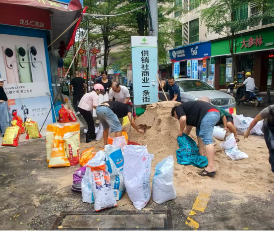 今年第18号超强台风“桦加沙”来势汹汹。面对严峻的台风防御形势,湛江供销系统龙头供销社迅速行动,主动担当,紧急购买一车建筑用沙,组织人员现场制作防风沙袋,免费提供给商铺的租户,全力帮助租户做好防风预备工作,以实际行动筑牢台风防御屏障。