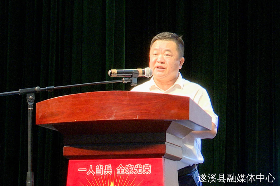 刘桂兴代表遂溪县委、县政府向荣获军功的军人家庭致以最热烈的祝贺,向长期默默支持国防和军队建设的广大军属表示衷心的感谢,向此刻正守卫祖国、奉献军营的全体现役官兵致以最崇高的敬意。希望广大军人牢记习近平总书记对青年“立志、修德、成才、担当”的殷切嘱托,以功臣模范为榜样,立足战位、精武强能,在强军征程中为家乡增光添彩、再立新功。