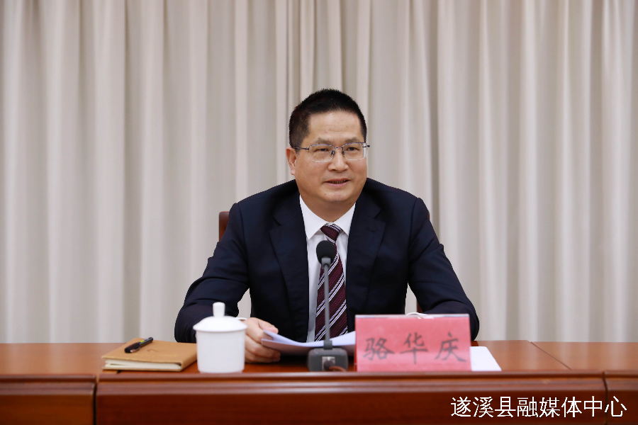 遂溪县委书记骆华庆传达学习党的二十届四中全会精神并讲话,遂溪县委副书记、县长张洋主持会议。