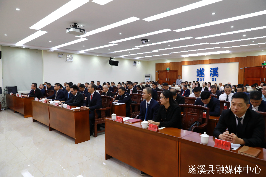 遂溪县人大常委会主任沈东宇等县四套班子领导成员、副处级干部;县正处级老同志;县人民法院院长、县人民检察院检察长;县直有关单位、驻遂有关单位主要领导;各镇(街道)党(工)委书记、镇长(办事处主任)参加会议。