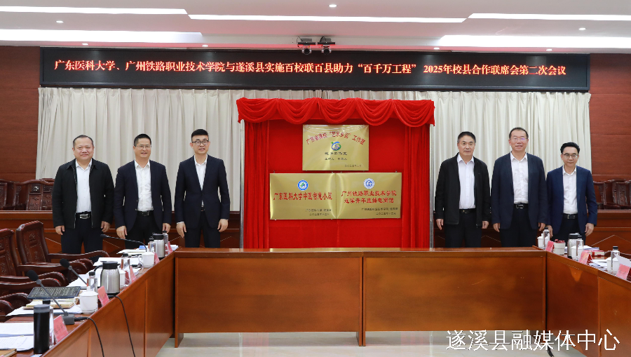 12月18日下午,广东医科大学、广州铁路职业技术学院与遂溪县实施百校联百县助力“百千万工程”2025 年校县合作联席会第二次会议召开,总结校县结对共建阶段性成果,深入谋划下一步合作方向,为推动校县合作在新起点上实现新突破,为遂溪“百千万工程”落地见效注入更加强劲的动力。遂溪县委书记骆华庆出席会议并讲话,遂溪县委副书记、县长张洋主持会议。