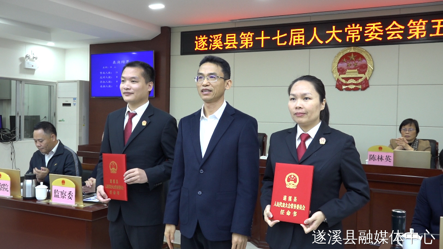 会议审议决定人事任免事项:补选张洋为湛江市第十五届人民代表大会代表;决定免去许阮锋的遂溪县人民政府副县长职务;决定任命陈光提为遂溪县人民政府副县长;任命蔡景恩为遂溪县人民法院审判员;任命彭志芳为遂溪县人民法院审判员。