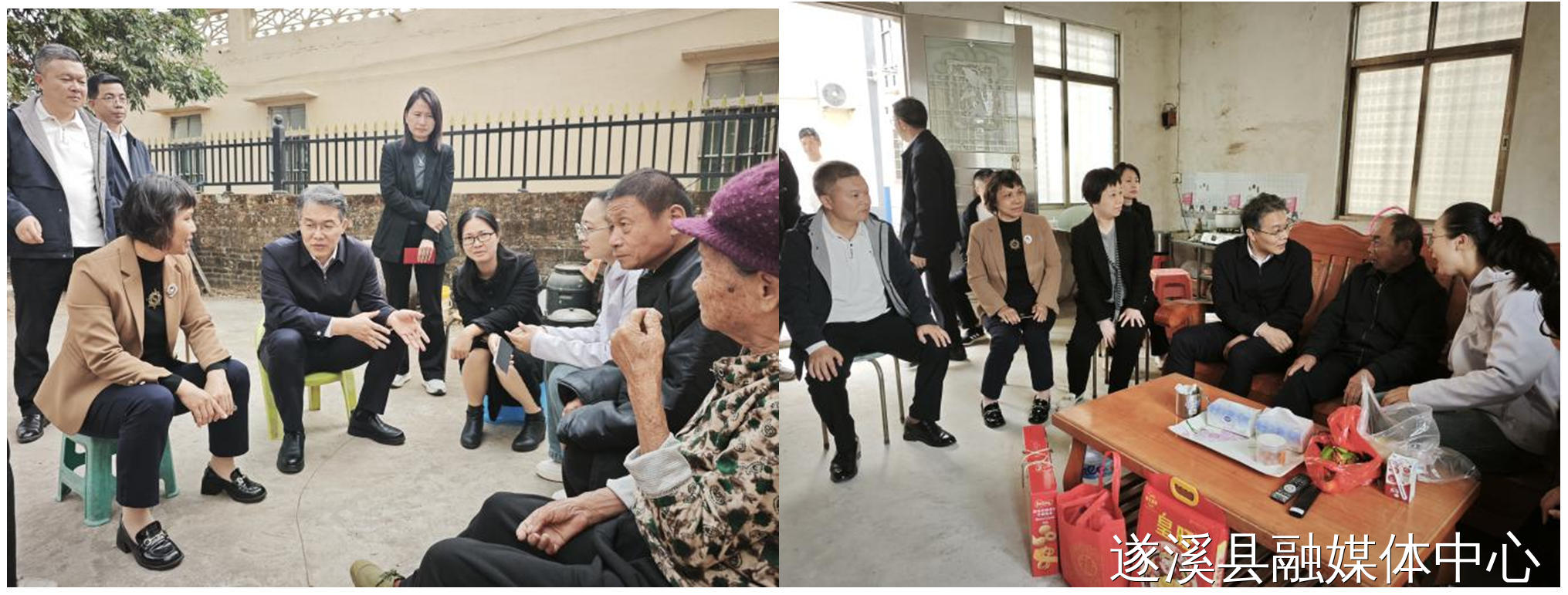 郑浩然一行首先来到竹山村,实地察看典型村创建推进情况,并入户慰问困难农户。在农户家中,详细查看他们的居住条件,倾听他们年轻时参加鹤地水库建设的事迹,了解他们的家庭情况、健康状况、医疗保障、子女上学和经济收支等情况,叮嘱他们保重身体、坚定信心,在党和政府帮助下把日子越过越好,并送上慰问金和慰问品。