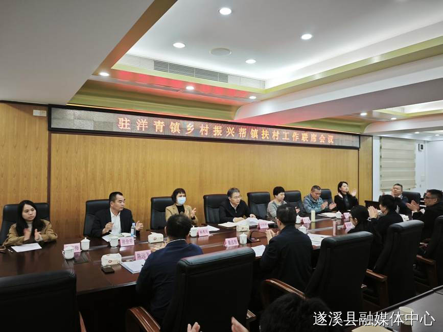 联席工作会议在洋青镇由遂溪县人大常委会党组成员、副主任黄彦彤主持,首先由洋青镇常务副镇长姚孟介绍该镇乡村振兴的基本情况。驻洋青镇工作队队长黄春光汇报2025年驻镇帮镇扶村重点任务完成情况以及下一步工作目标和措施。市直组团帮扶单位领导杨秀凤、黄科、张金荣、吕华兴等同志作表态发言,就如何发挥各自单位资源优势,全力支持做好乡村振兴工作提出了意见和建议。遂溪县委常委、宣传部部长豆萍英要求洋青镇委、镇政府要与驻镇工作队紧密配合,科学谋划,通力合作,共同描绘洋青镇乡村振兴新画卷。