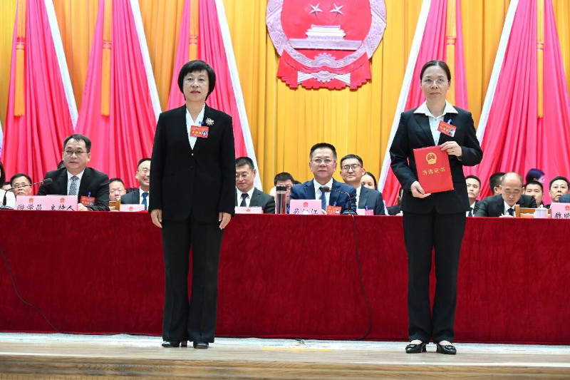 市人大常委会党组书记、主任魏晓燕为新当选人员颁发当选证书。