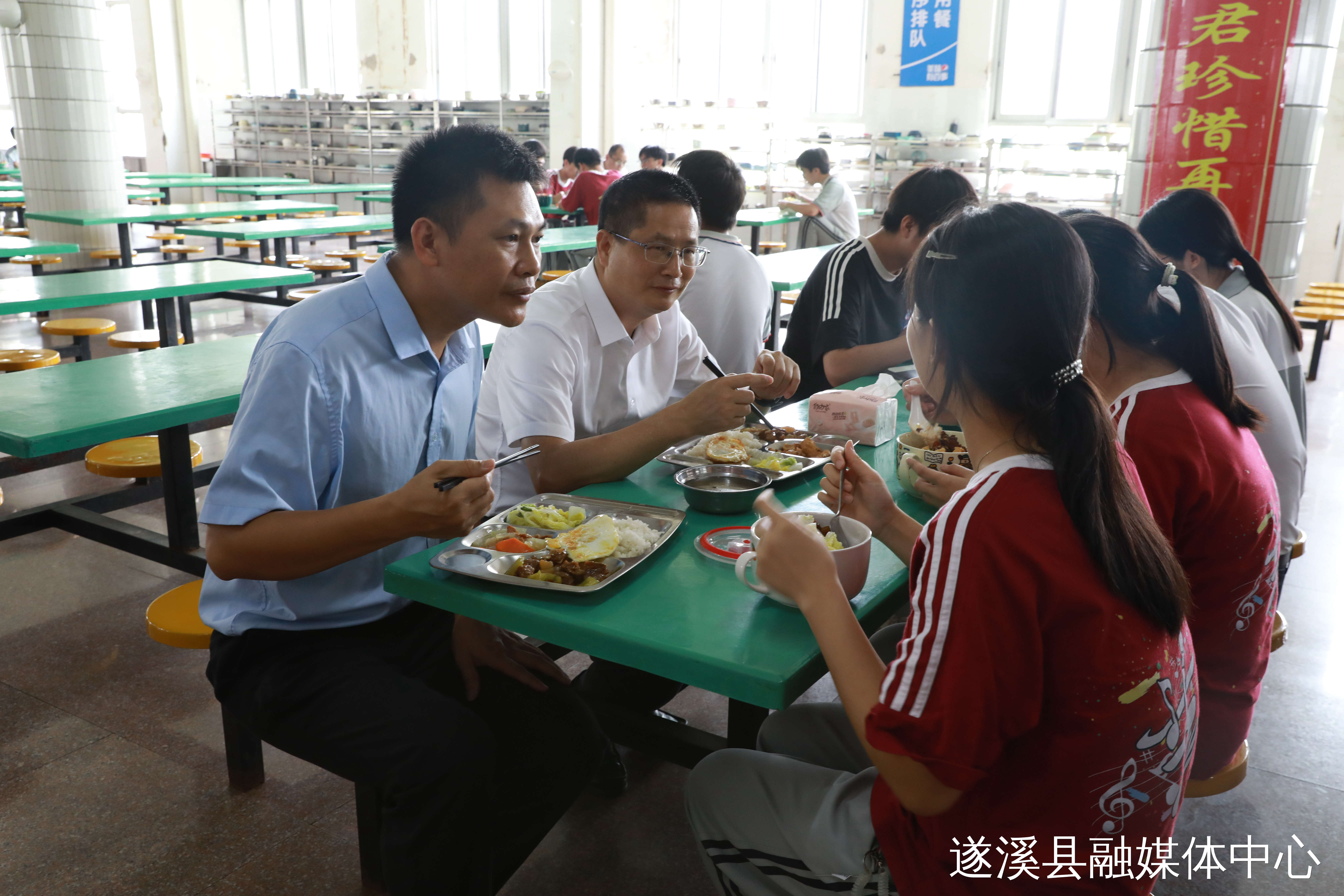 随后,骆华庆来到遂溪县第三中学食堂,重点督导校园食品安全、食材管控、后厨规范运营等工作,并陪同学生一同就餐,细致了解校园供餐品质情况。他强调,校园食品安全事关学生健康成长,教育部门和学校要压实主体责任,抓实食材采购、后厨管理、日常管控各环节工作,严守食品安全底线,全力守护学生“舌尖上的安全”。