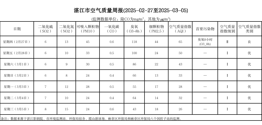 湛江市空气质量周报(2025-02-27至2025-03-05)
