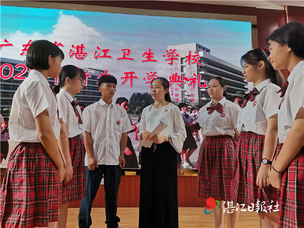 9月18日,广东省湛江卫生学校新生开学典礼上,湛江中心人民医院感染科ICU护士长、“全国抗击新冠肺炎疫情先进个人”黎月秋回到母校与新生们分享援鄂抗疫事迹,勉励师弟师妹们学好专业知识,不断奋进,为医疗事业贡献力量。