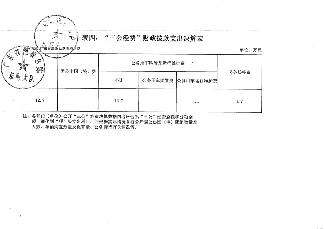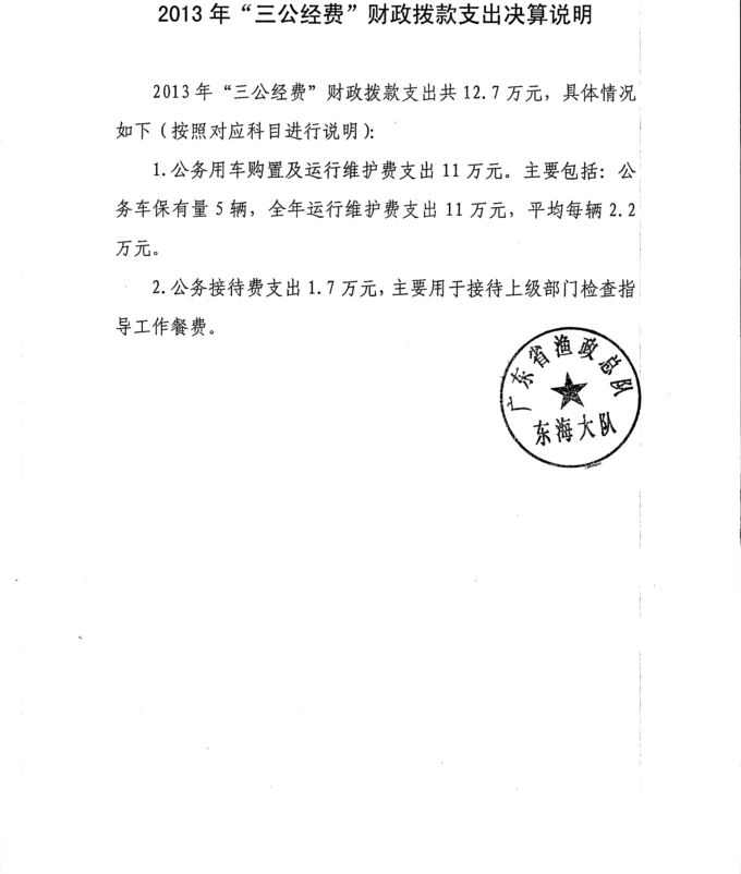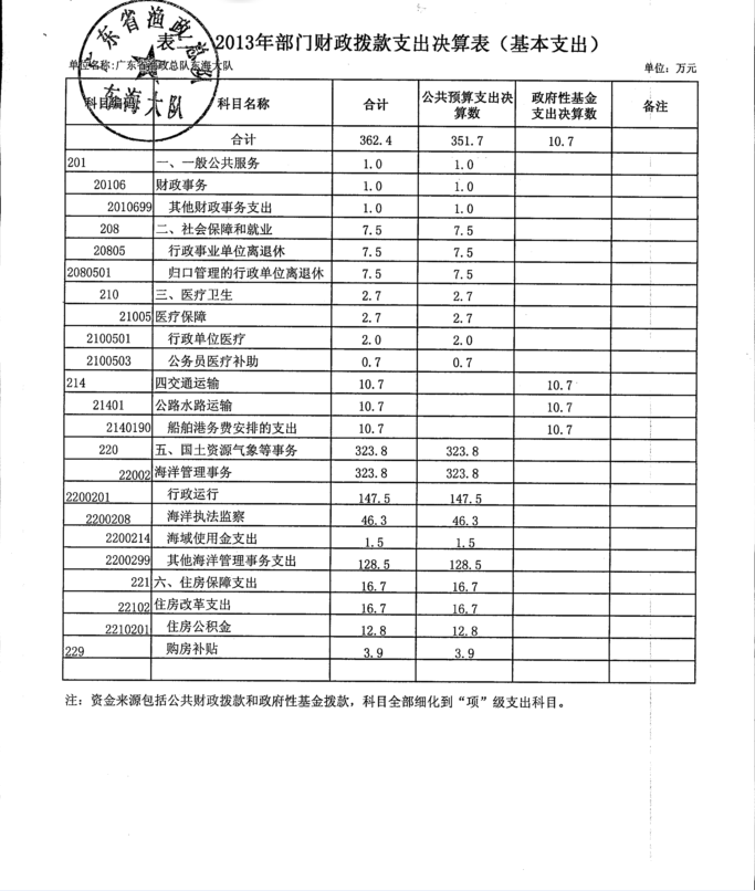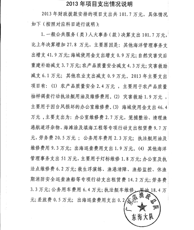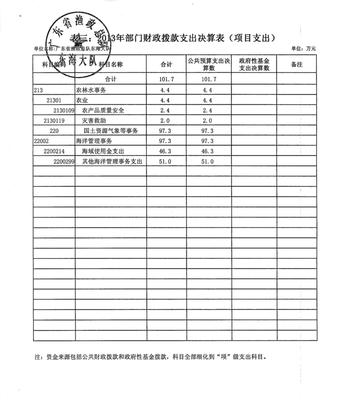 2013年广东省渔政总队东海大队决算基本情况说明及部门收支决算表