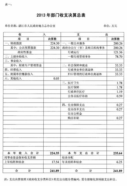 湛江市志办2013年度部门收支决算总表