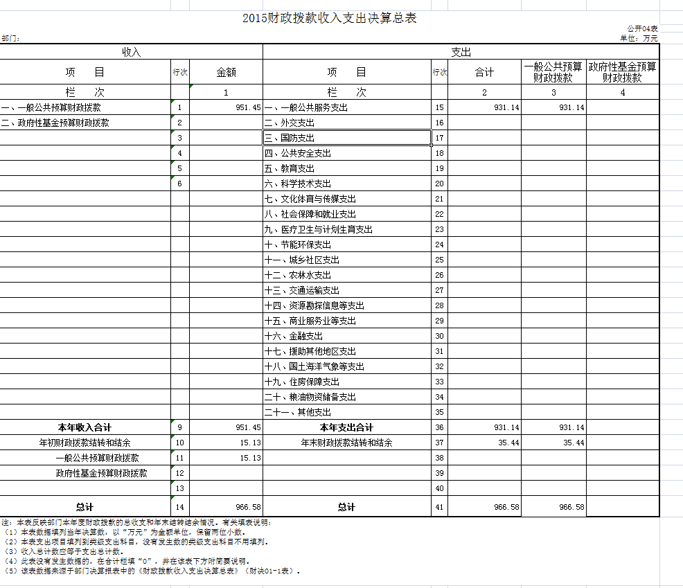 四、财政拨款收入支出决算总表