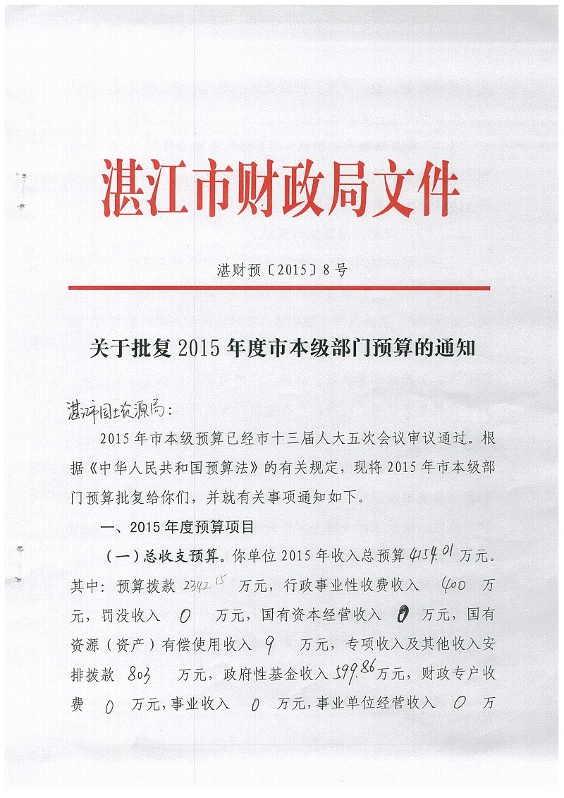 2015年湛江市国土资源局部门项目支出预算表.xls