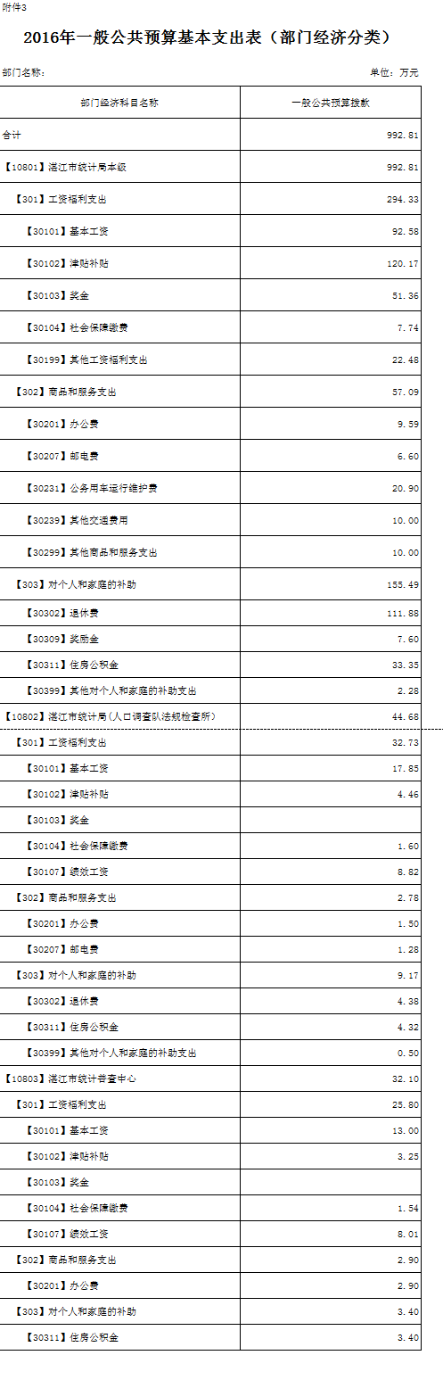 1.本部门预算为汇总预算,包括:湛江市统计局本