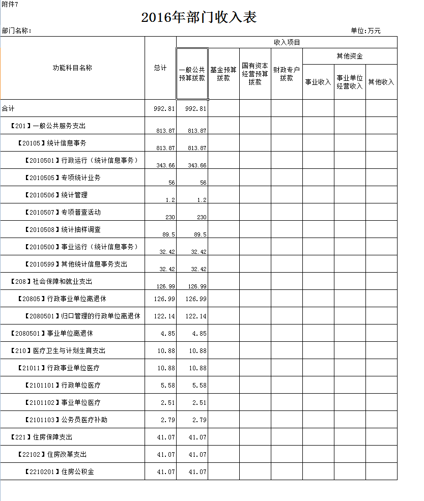 七、2016年部门收入表