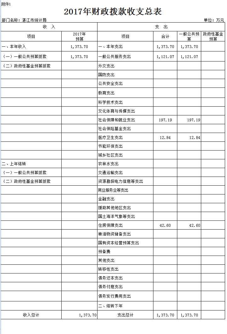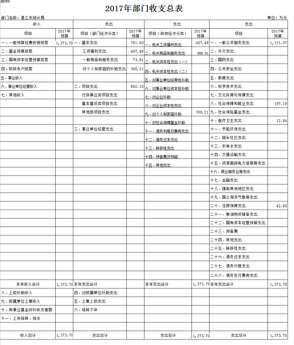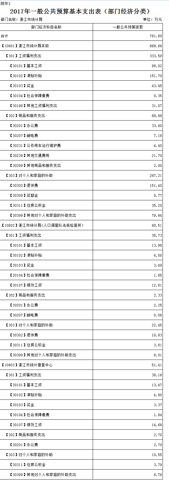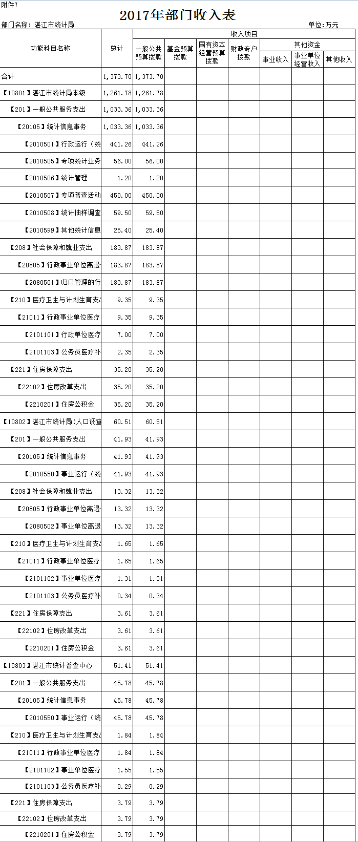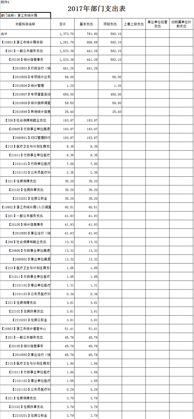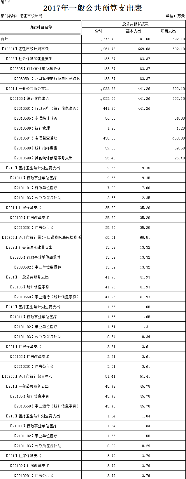 1.本部门预算为汇总预算,包括:湛江市统计局本