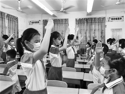 入队仪式不能少,疫情防控不放松,新队员们有序地在各自的教室里迎来了这特殊而神圣的时刻。伴着激昂的少先队出旗曲,迎着鲜艳的队旗,新队员们纷纷戴上了鲜艳的红领巾。他们个个精神饱满,脸上洋溢着自豪的笑容。