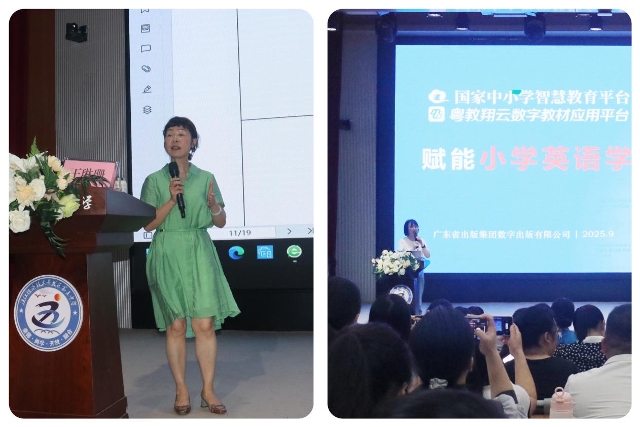 “工欲善其事,必先利其器。” 广东省出版集团教研专员郑晓俐率先登台,围绕 “数字平台融合教学” 展开专题培训。她从云教案审核规范、示范课打磨技巧等实际教学需求出发,深入浅出地讲解了中小学智慧平台、粤教翔云等平台的功能应用与操作逻辑,生动演示了数字技术如何赋能课堂教学,为在场教师解锁了 “智慧教育” 的实践新方法,让科技助力教学的理念如种子般在现场扎根,激发了教师们探索数字化教学的热情。