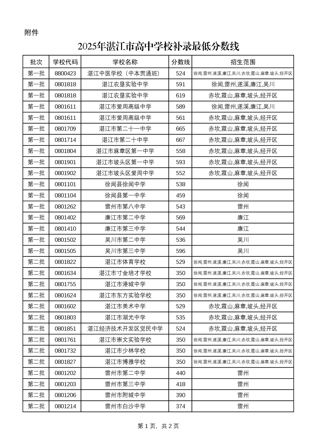 参加补录的考生可于8月6日17时起登录湛江市招生考试网、“湛江教育”微信公众号查询补录结果。