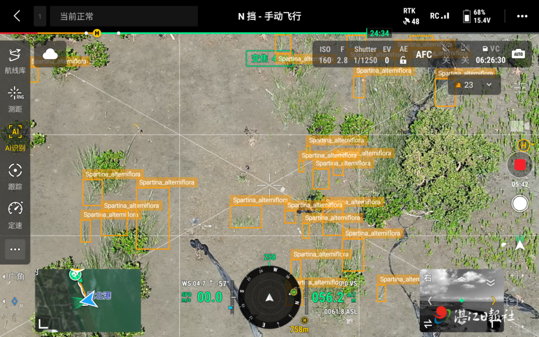 “这套算法模型,正是湛江‘人工智能+生态保护’的典型成果。它依托大疆Matrice系列无人机,能够轻松应对红树林复杂地形的巡查需求,可快速找出并标注互花米草,通过‘无人机+AI’,打造一张红树林智能‘守护网’。”湛江市无人机应用产业协会理事长林栋表示。