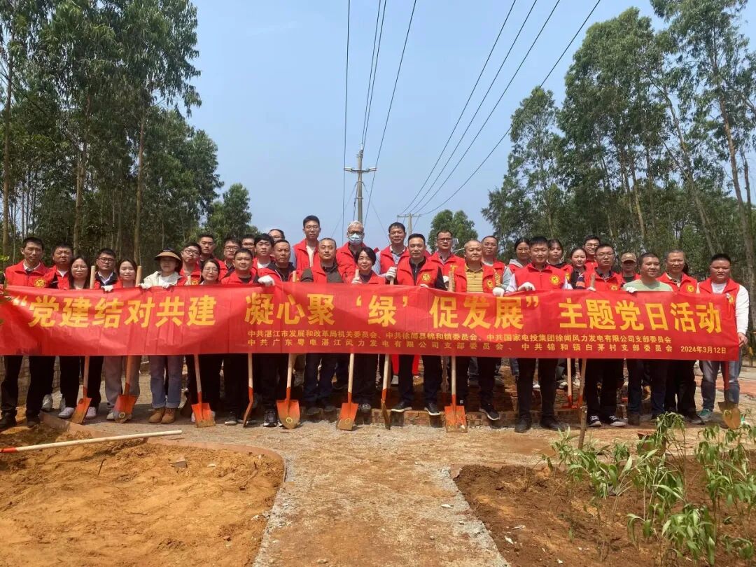 春回大地万物生,植树添绿正当时。为深入贯彻落实习近平生态文明思想,认真贯彻落实省委“1310”具体部署,进一步推进绿美湛江生态建设和乡村绿化工作。3月12日上午,市发展改革局联合徐闻县锦和镇政府、国家电投集团徐闻风力发电有限公司、广东粤电湛江风力发电有限公司和锦和镇白茅村委会开展“党建结对共建,凝心聚‘绿’促发展”主题党日活动,共同绘就锦和绿美乡村新画卷,此次活动近100名党员干部和志愿者参加。活动现场,大家干劲十足、配合默契,挥锹铲土、扶苗填坑、提水浇灌,在春光中奏响了绿色的交响曲,植树现场一片热火朝天景象。经过大家近2个小时的辛勤劳作,近100余棵的大叶紫薇、白银、红车等新栽种的树苗在党建共建林内昂然挺立,焕发勃勃生机,与一旁的农田、村道和村居互为映衬,形成了一道“新生”的美丽风景线。参加活动的党员干部纷纷表示,此次绿美乡村植树活动,既有效激发了大家的劳动热情,又增进了党员干部队伍的凝聚力和战斗力。大家不仅亲手种下了绿色的希望,更是在实践中加深了对人与自然和谐共生的认识。下一步,市发展改革局将继续深入践行习近平生态文明思想,牢固树立“绿水青山就是金山银山”的理念,积极响应市委市政府关于深入推进绿美湛江生态建设工作部署,以实际行动争做乡村绿化的宣传者、推动者和护卫者,为建设绚丽多姿的绿美湛江贡献更多力量。