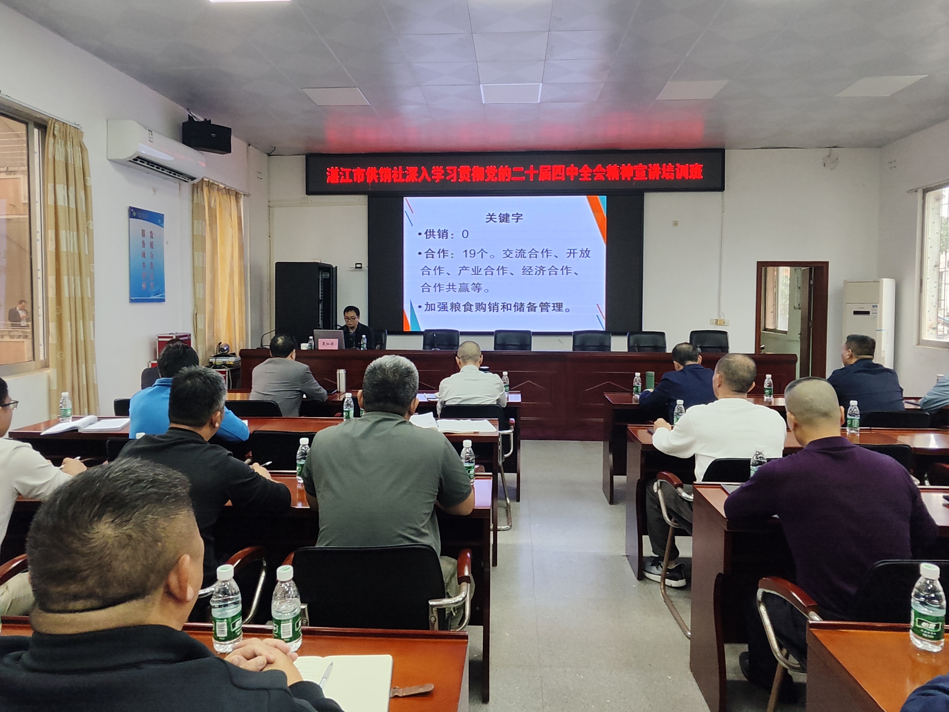 为深入学习贯彻党的二十届四中全会精神,全面准确领会全会精神实质与核心要义,切实把全体干部的思想和行动统一到党中央决策部署上来,12月3日,湛江市供销社举办专题宣讲培训班。市社机关全体干部、党员,直属单位负责人及支部书记近50人参加此次培训。