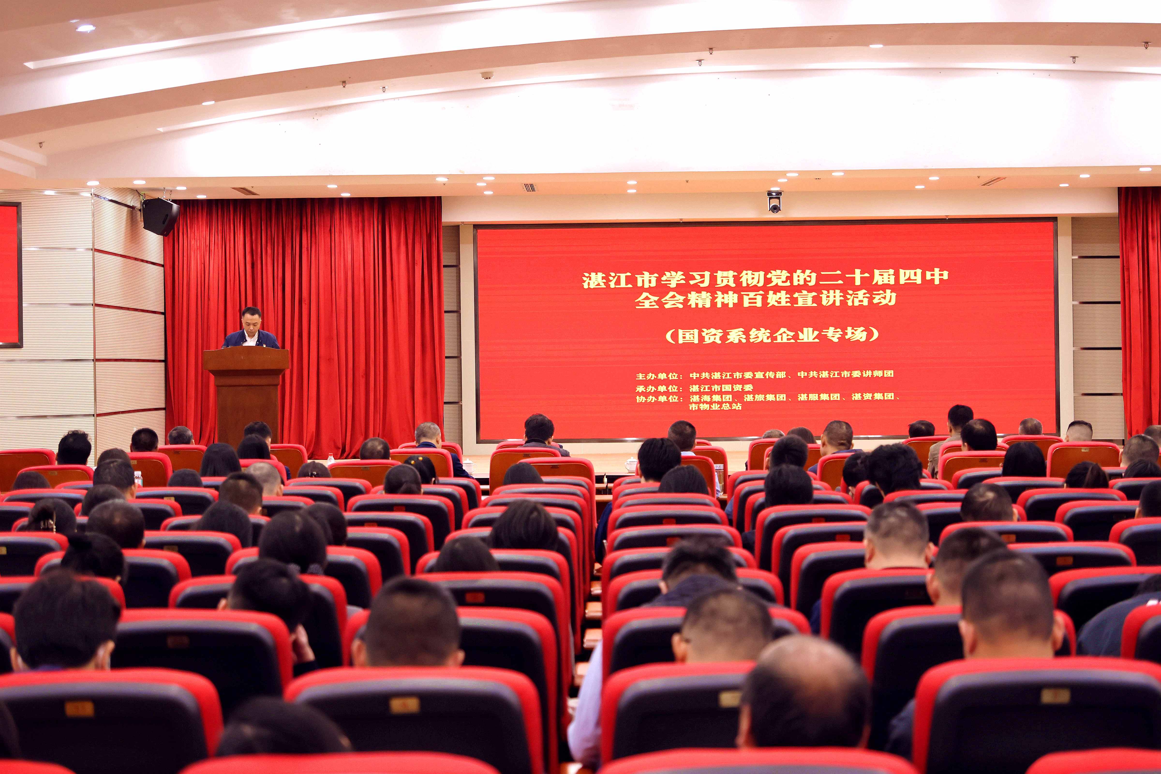12月8日上午,湛江市学习贯彻党的二十届四中全会精神百姓宣讲活动(企业专场)在市会展中心多功能厅成功举行。市国资委全体干部职工,湛城集团、湛服集团、湛旅集团、湛海集团、湛资集团及市物业总站领导干部及党员职工代表约一千多人参加活动。
