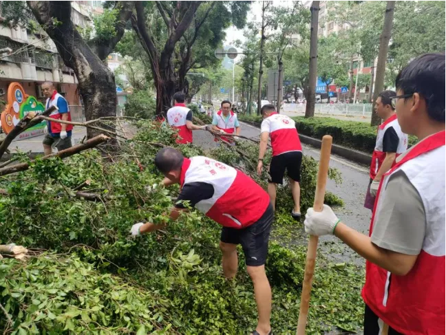 市人力资源社会保障局迅速启动平急转换机制,各基层党组织积极响应,先后组建三批党员先锋队共53名党员干部参与防风防汛和灾后重建工作,充分发挥了党组织战斗堡垒和党员先锋模范作用。特别是为了支援受灾严重的徐闻县、雷州市,第一批党员先锋队闻令而动,就近报到。在市区的党员干部积极与街道、社区工作人员并肩作战,投入紧张救援。 6日上午,市人力资源社会保障局主要领导亲自部署,迅速组建多支志愿者队伍,奔赴霞山区岭南社区、麻章区民乐社区等结对共建社区,全力支援基层救灾复产。 在霞山区岭南社区,台风肆虐的痕迹明显。粗大的树木枝干被连根拔起或拦腰折断,不仅完全阻断了行人通道,也侵占了部分机动车道,严重影响车辆通行和市容环境。面对复杂的现状,党员志愿者们没有丝毫退缩。他们一到现场,便立即与社区工作人员进行对接,手持油锯、砍刀、铁锹、扫帚等工具,有条不紊地开展作业。经过数小时的连续奋战,社区主要人行通道和机动车道基本通畅。 市人力资源社会保障局主动对接4所技工院校,组织干部职工开展校园清障修复行动。如在市技师学院,23名党员干部职工分工协作,在校园内紧张开展灾后重建工作,清理吹倒树木、玻璃碎片、垃圾积水等,在大家共同努力下,校园恢复干净整洁面貌,为学校筑牢安全开学 “防护网”,有效确保节后学生安全返校。 接下来,市人力资源社会保障局将继续密切关注灾后恢复进展,根据全市统一部署和结对社区实际需求,随时投入救灾复产,与全市人民一道,众志成城,共克时艰!