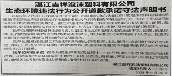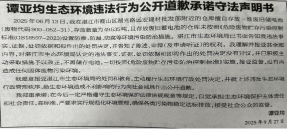 湛江市2025年部分生态环境违法主体登报公开道歉(二)