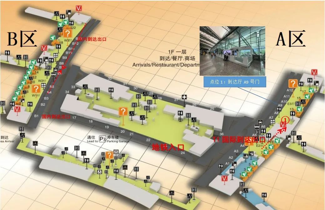 T1航站楼设置有1个办证点:到达厅A9号门旁