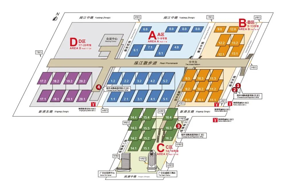 广交会展馆D区境外采购商报到处(广州地铁8号线新港东站A出口)