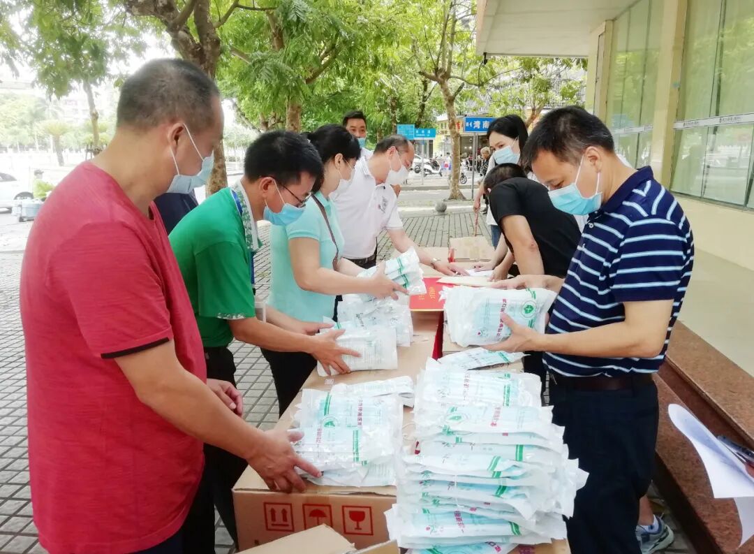 为支持湛江市疫情防控工作,助力中小学校顺利复学,5月11日上午,南部战区海军机关工作人员带着一批防护物资来到市退役军人事务局,委托市双拥办将防护用品赠送给湛江市11所中小学。市退役军人事务局局长兼市双拥办常务副主任陈典聪、市退役军人事务局副局长兼市双拥办副主任檀少东、市教育局纪检组长刘红强和有关学校的代表参加交接仪式。