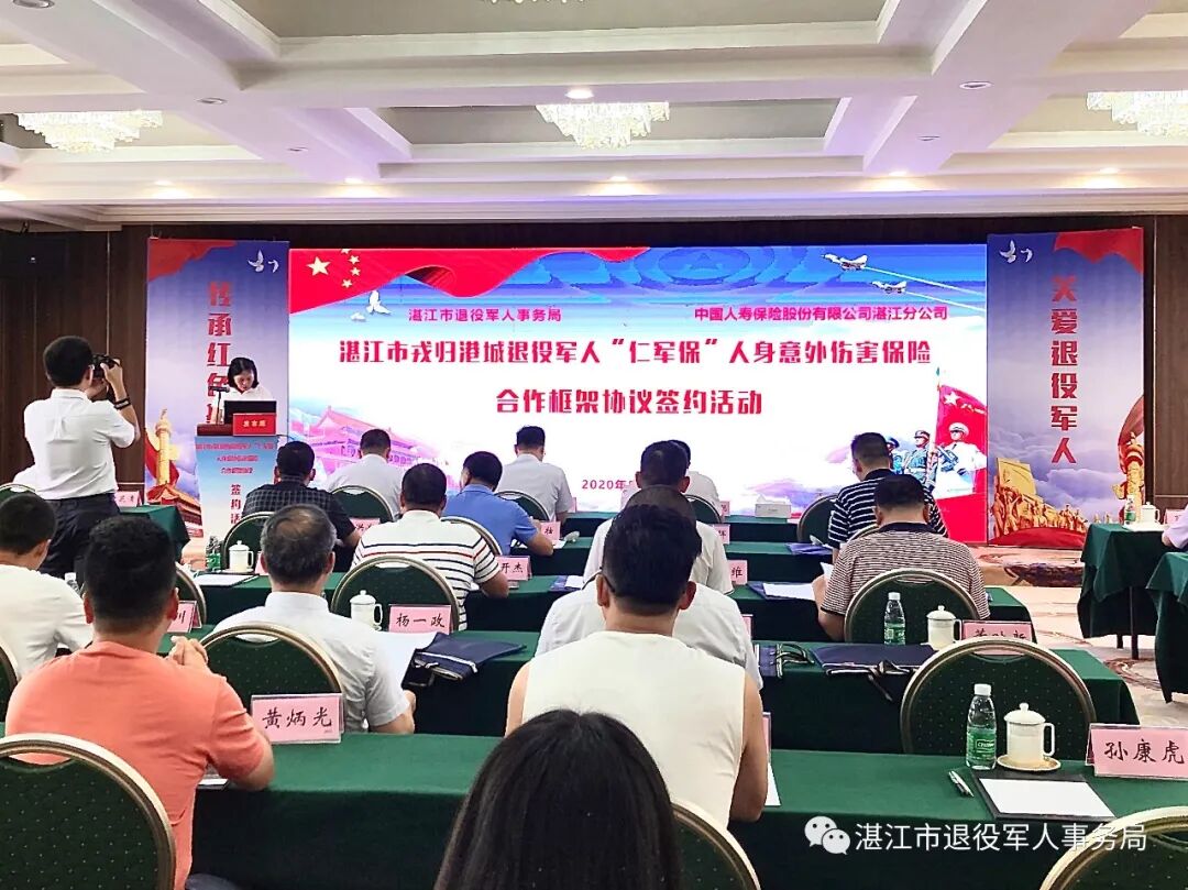 8月18日,湛江市退役军人事务局联合中国人寿湛江分公司成功举办戎归港城退役军人“仁军保”人身意外伤害保险合作框架协议签约仪式,正式启动“仁军保”公益活动。