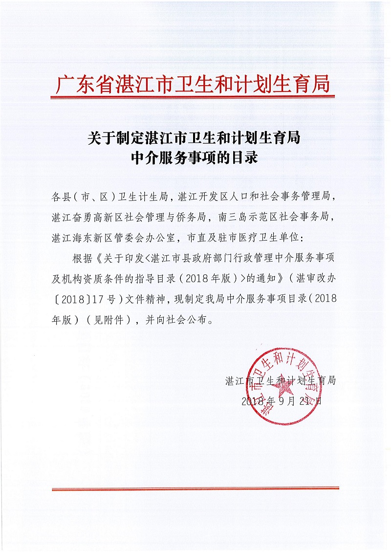 关于制定湛江市卫生和计划生育局中介服务事项的目录