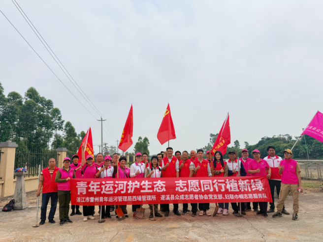 为践行习近平生态文明思想,推进绿美湛江、绿美运河建设,切实将正确政绩观学习教育成果转化为为民办实事实效,近日,西埇管理所主动联合遂溪县众成志愿者协会党支部、妇联巾帼志愿服务队,在运河沿段开展“青年运河护生态 志愿同行植新绿”春季植树共建活动,以实干彰显担当。
