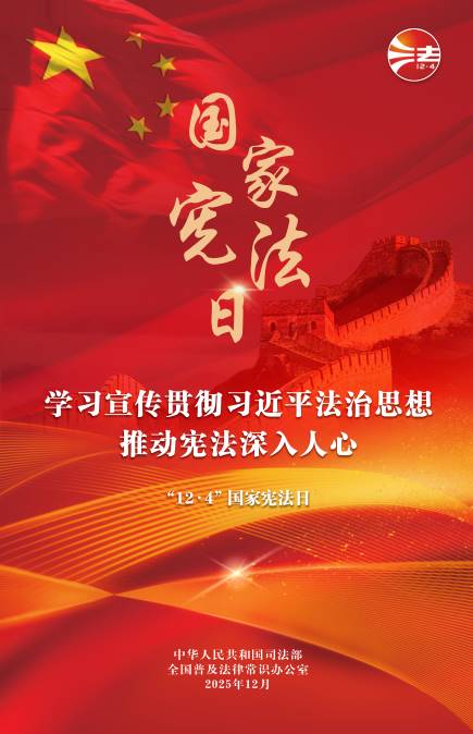 今年12月4日是第十二个国家宪法日,中央宣传部、司法部、全国普法办联合印发通知,活动主题为“学习宣传贯彻习近平法治思想,推动宪法深入人心”,在全国组织开展2025年“宪法宣传周”活动,时间为12月1日至7日。