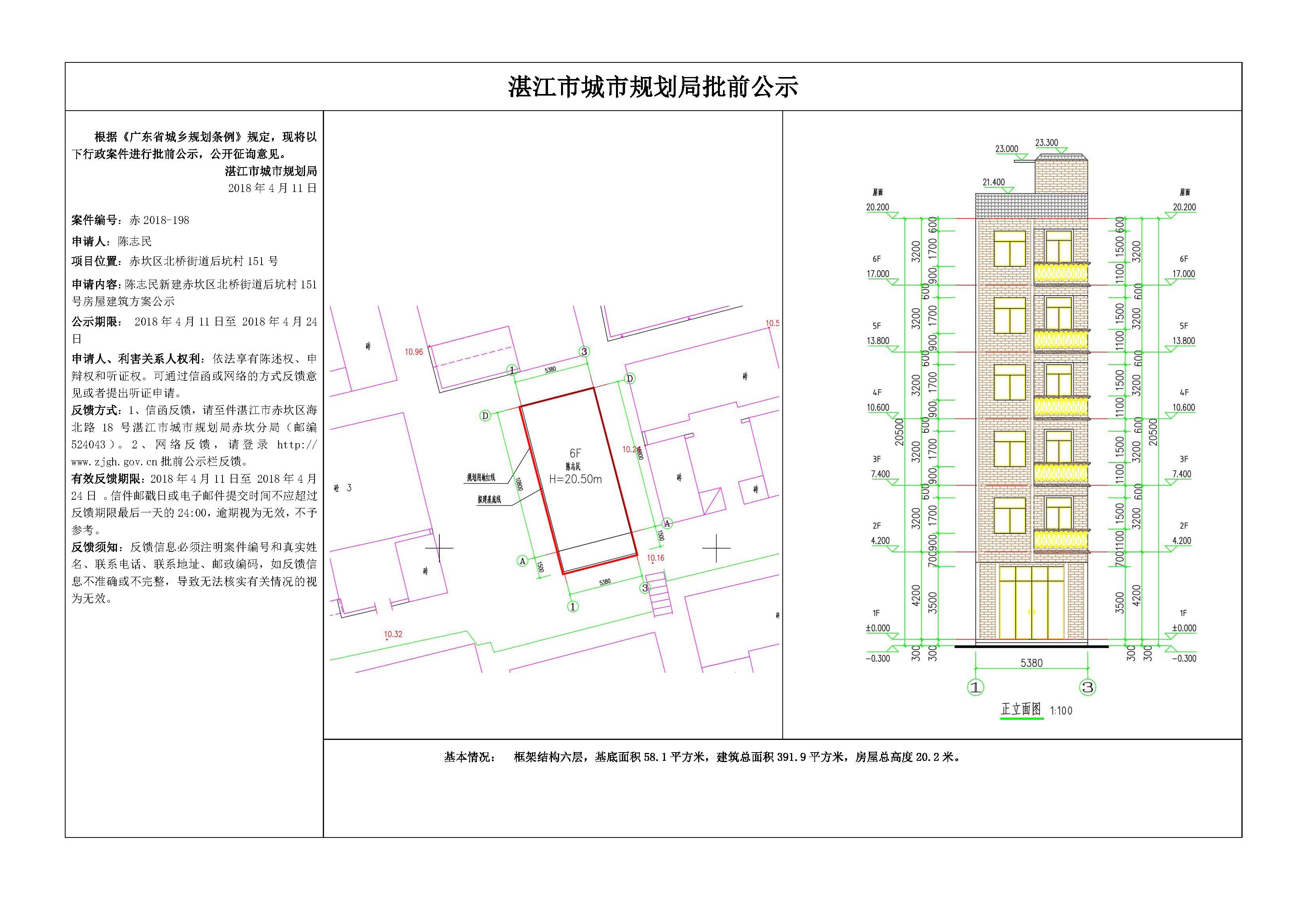 陈志民新建赤坎区北桥街道后坑村151号房屋建筑方案公示批前公示