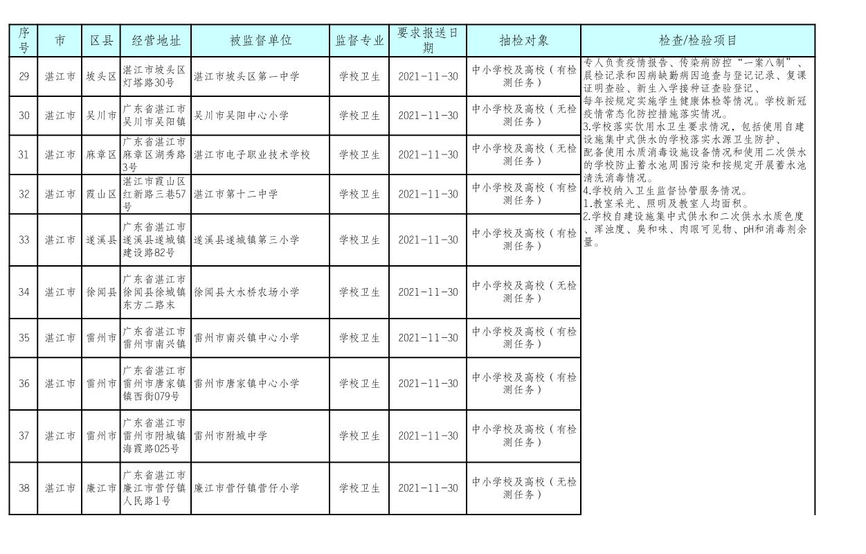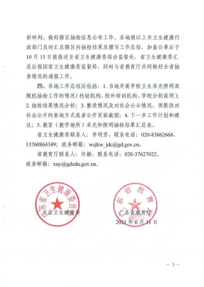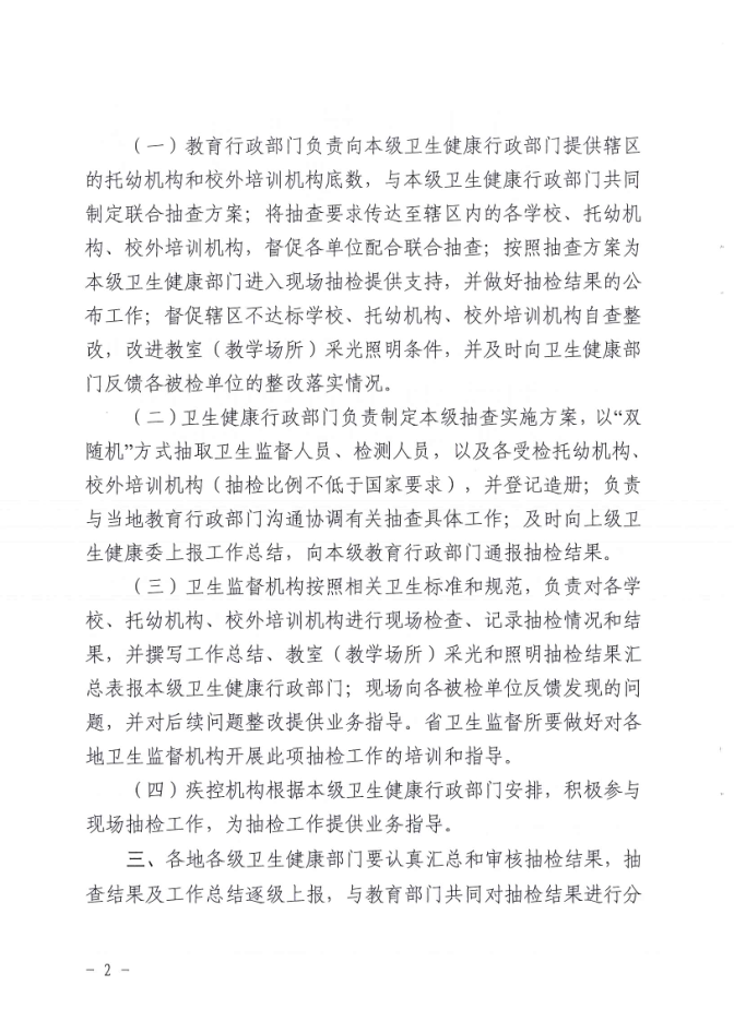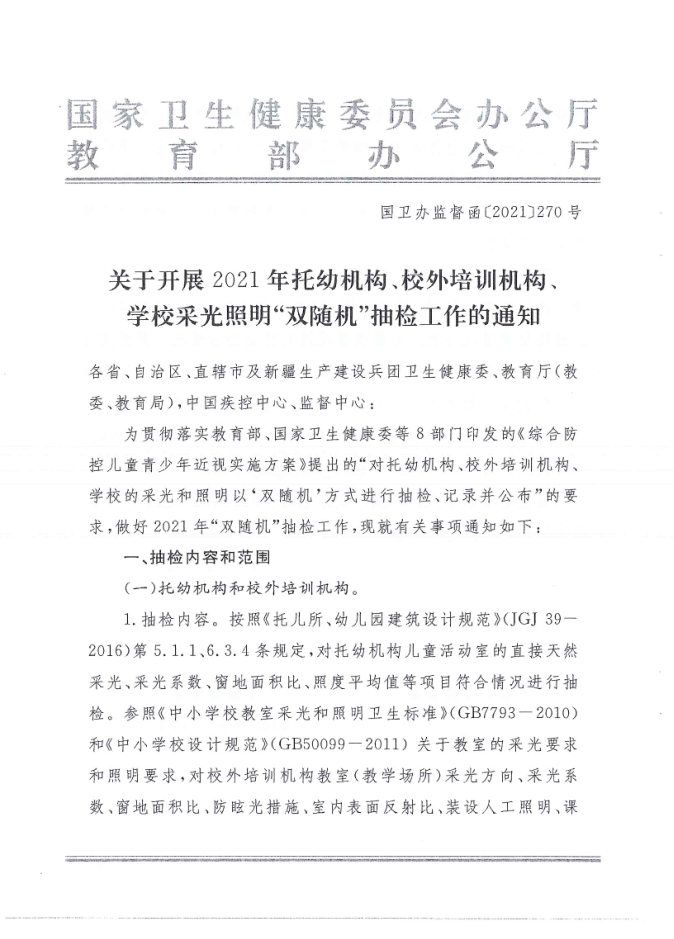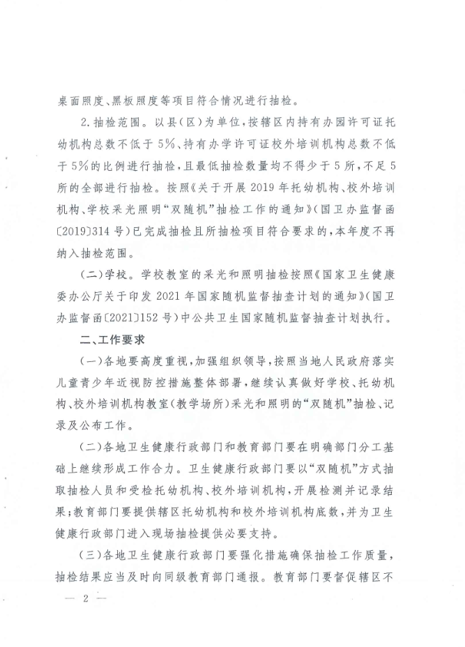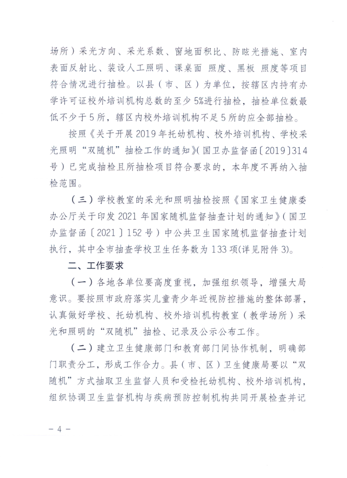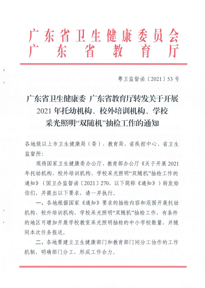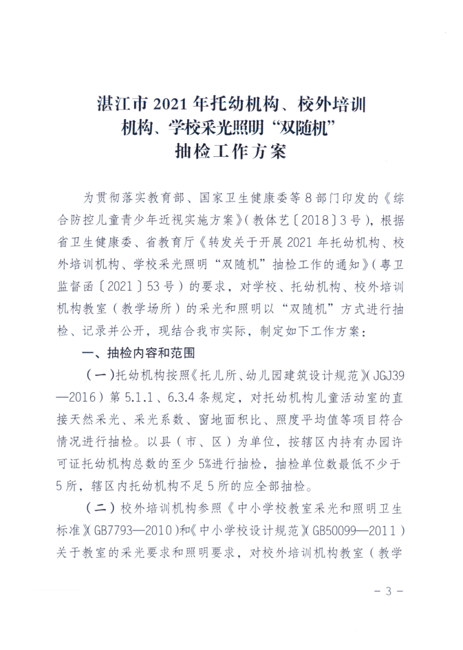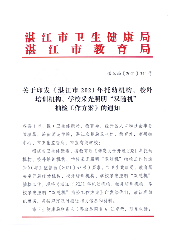 湛江市卫生健康局 湛江市教育局关于印发《湛江市2021年托幼机构、校外培训机构、学校采光照明“双随机”抽检工作方案》的通知