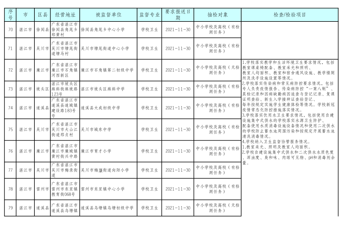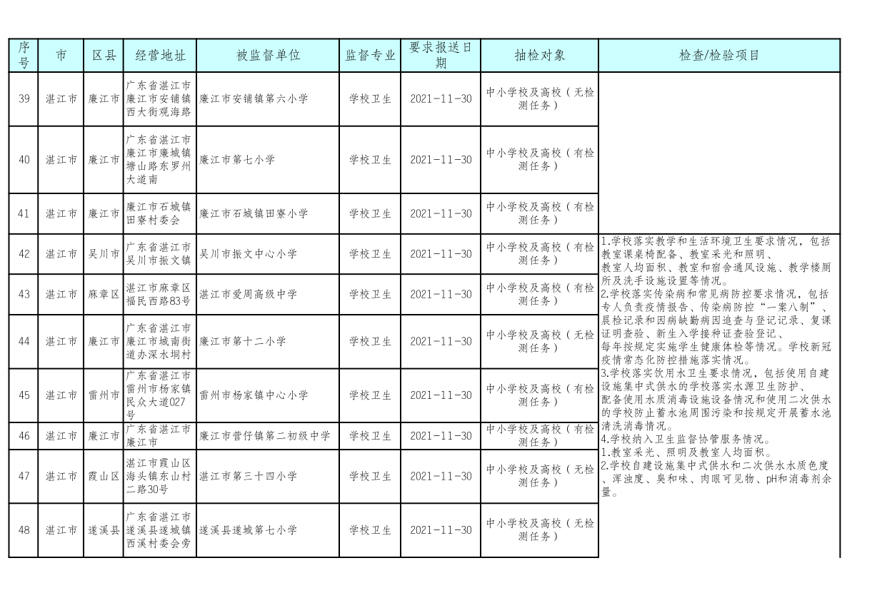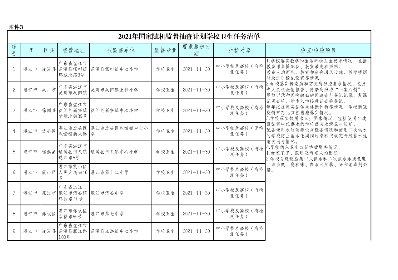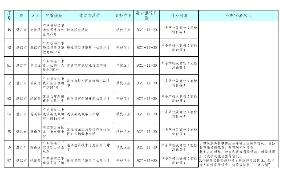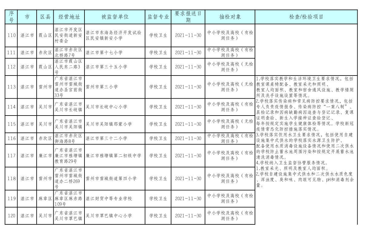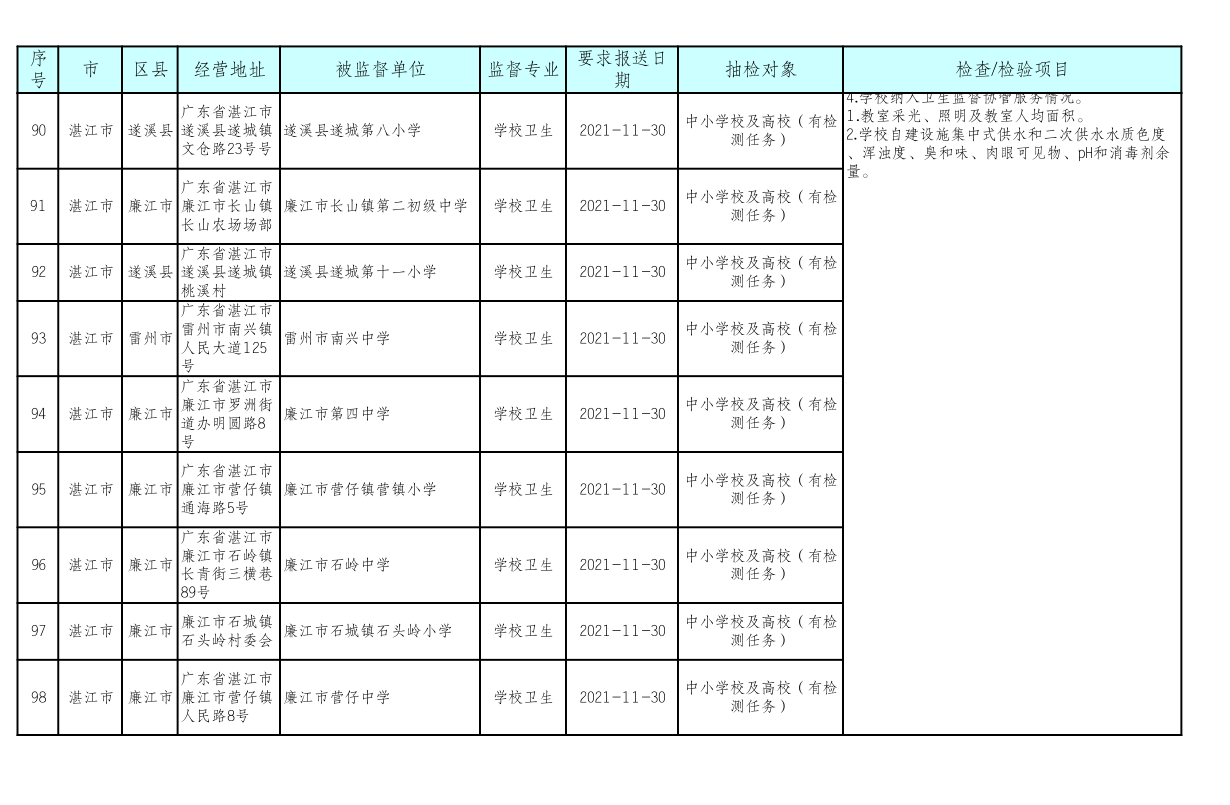 湛江市卫生健康局 湛江市教育局关于印发《湛江市2021年托幼机构、校外培训机构、学校采光照明“双随机”抽检工作方案》的通知