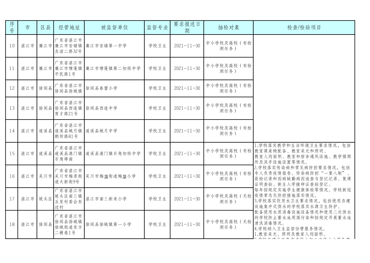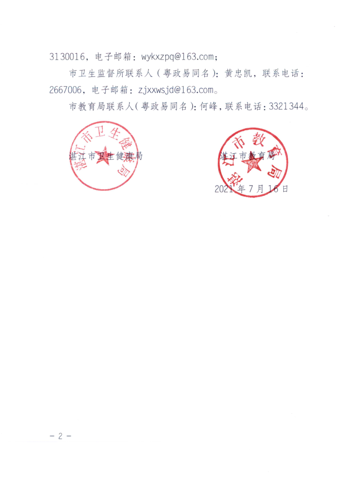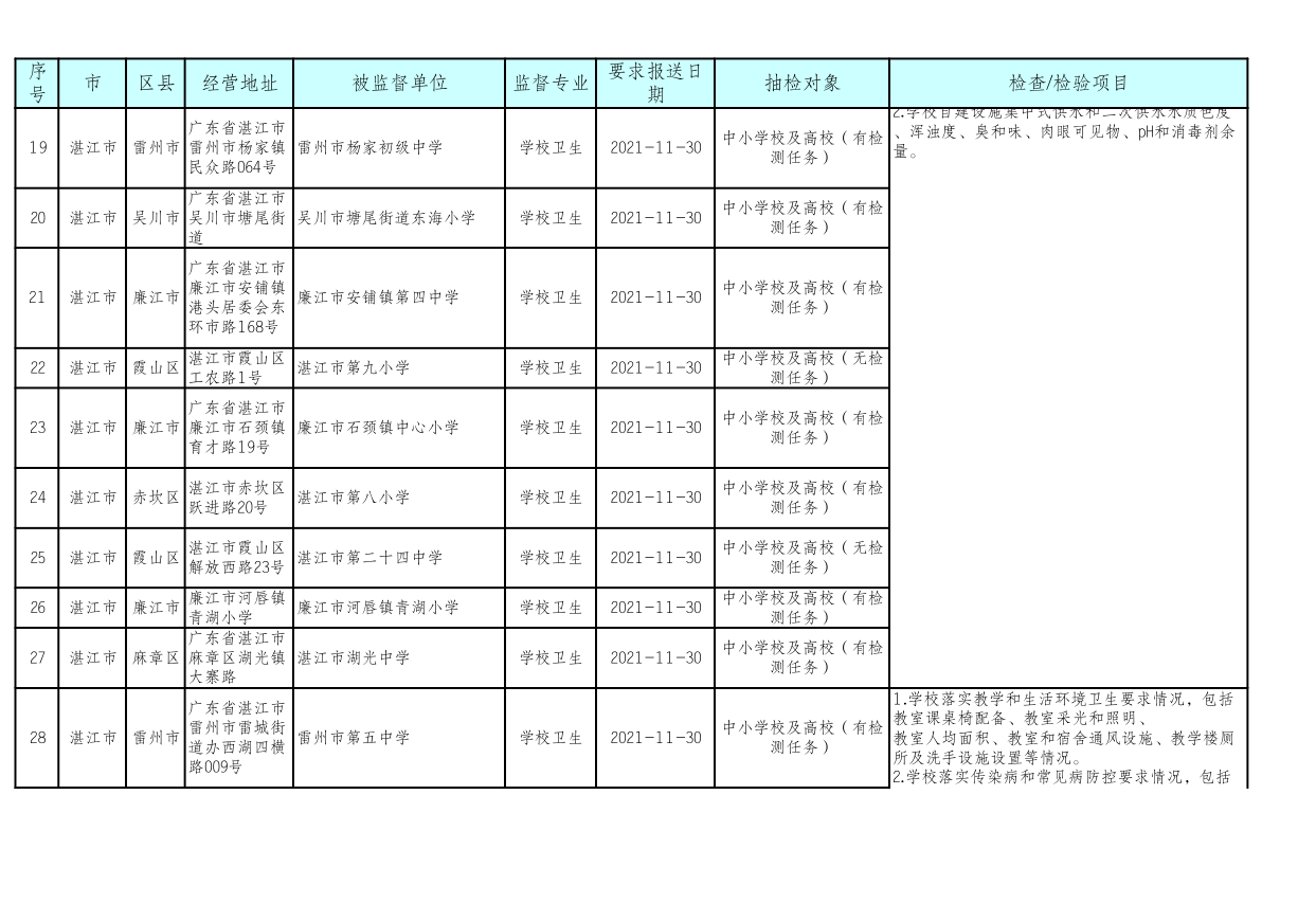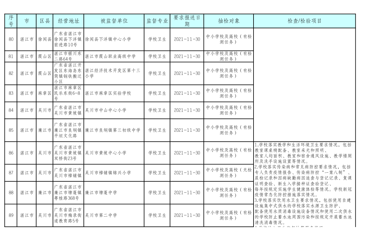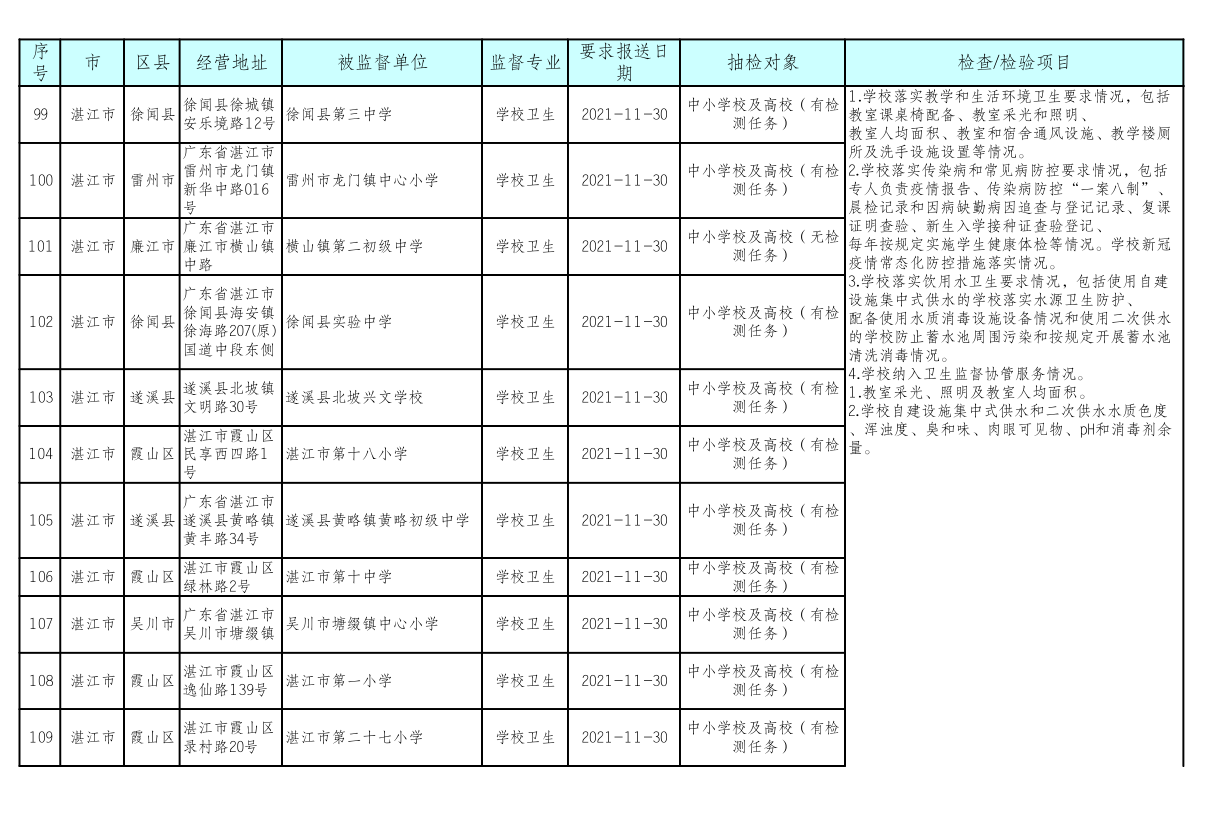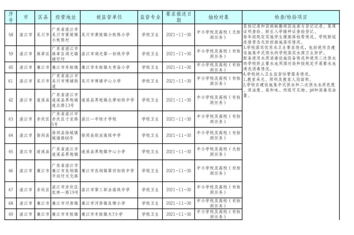 湛江市卫生健康局 湛江市教育局关于印发《湛江市2021年托幼机构、校外培训机构、学校采光照明“双随机”抽检工作方案》的通知