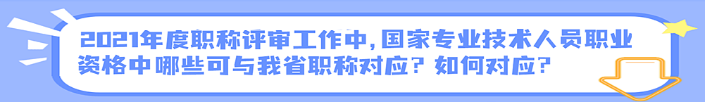 2021年度继续在全省职称评审工作中试行国家专业技术人员职业资格与我省职称对应。对应的职业资格证书管理按国家和省现行规定执行,不另行换发职称证书。