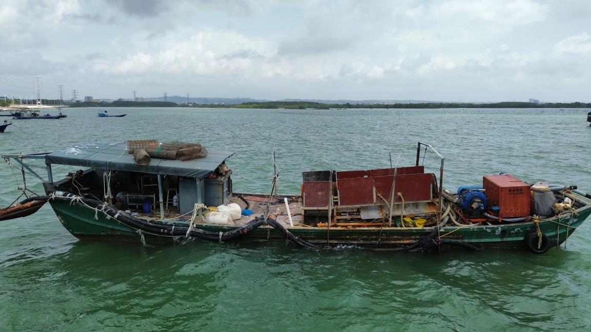 2026年3月17日,湛江海警局霞山工作站于东海岛大桥附近海域(21°05′40″N、110°19′19″E)查获1艘抛锚在该海域的绿色玻璃钢船,船身均未涂刷船名船号,船头均有抽螺渔具一套,船上无渔获物,船上无船舶证书或证明船舶属性的材料。根据《中华人民共和国海警法》第六十二条之规定,请船舶所有人或相关当事人携带船舶有效证书或者能够证明船舶合法属性的相关材料,在公告发出之日起6个月内到湛江海警局霞山工作站(地址:广东省湛江市赤坎区海滨大道北18号,联系电话0759-3203110)认领,逾期无人认领的,将依法以“三无”船舶予以没收处置。