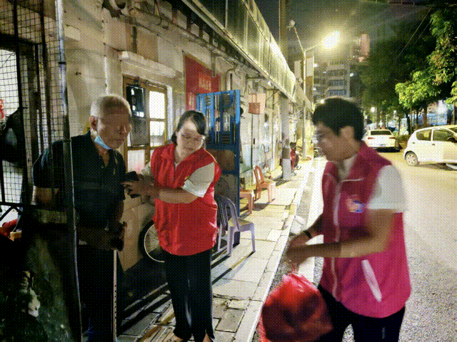 雷州市党员干部协同镇村干部、网格员顶风冒雨挨家排查,蹚着积水劝说低洼地带群众转移,用肩膀扛起救援物资,逐户护送老人小孩转移至安置点。