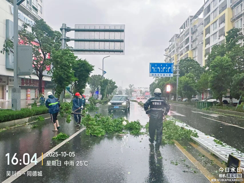 台风“麦德姆”登陆湛江期间,湛江城管队员化身“逆行者”,顶风冒雨出击,对城区主次干道开展巡查,一旦发现树木倒伏、道路积水、市政设施破损等险情,立即投入应急处置。