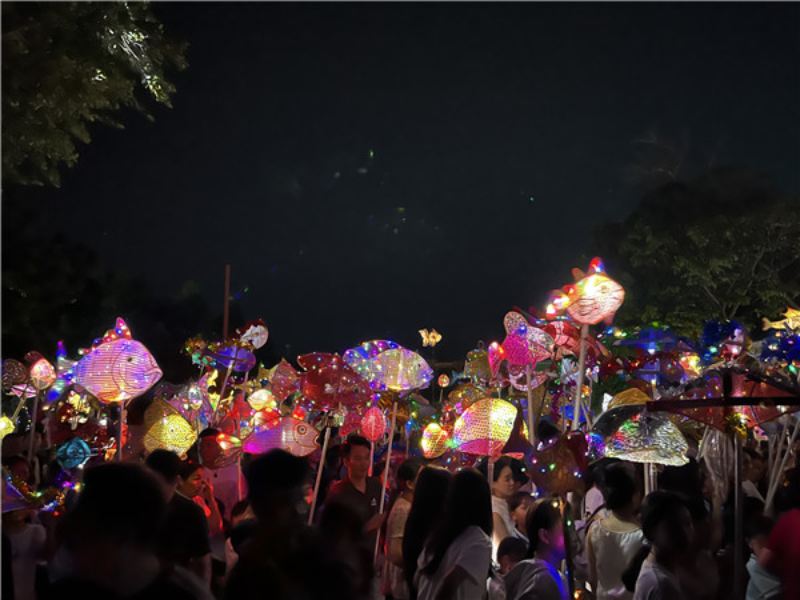 夜幕降临,华灯初上,乐民圩核心民俗盛事——游鱼活动正式启幕,点亮了整个街巷的夜色。据悉,游鱼活动启动前几日,乐民镇便已沉浸在忙碌的氛围中,家家户户齐动手,以竹篾为骨、彩饰为衣,用铁丝细致编织,精心制作各式灯组。