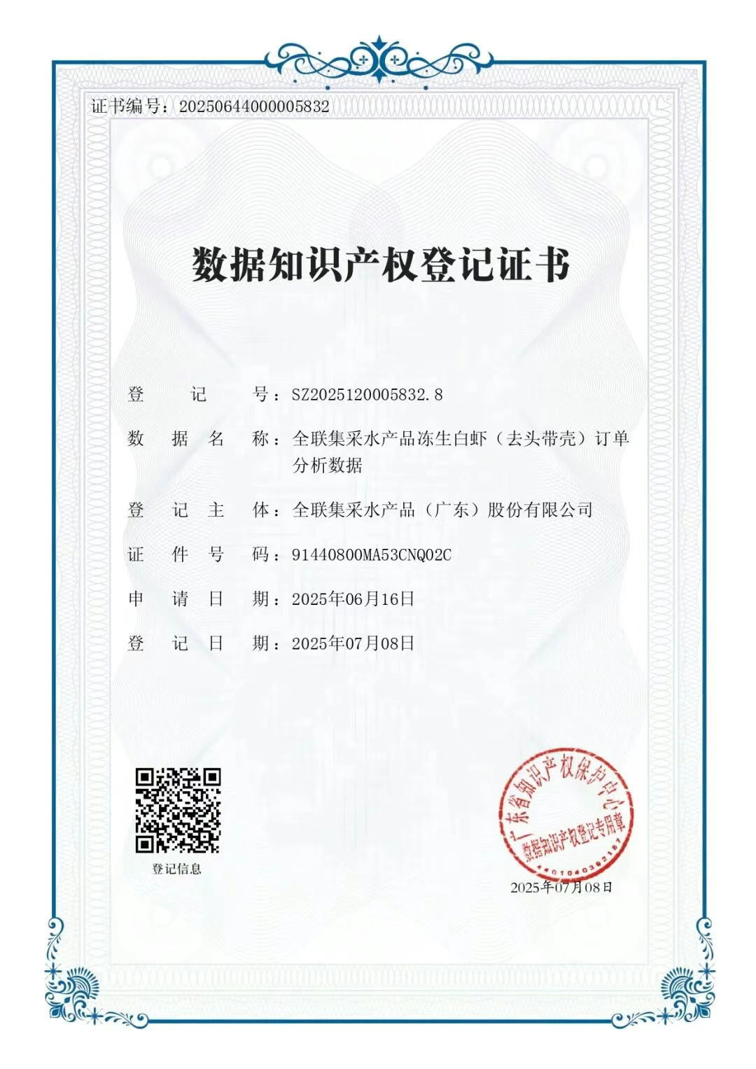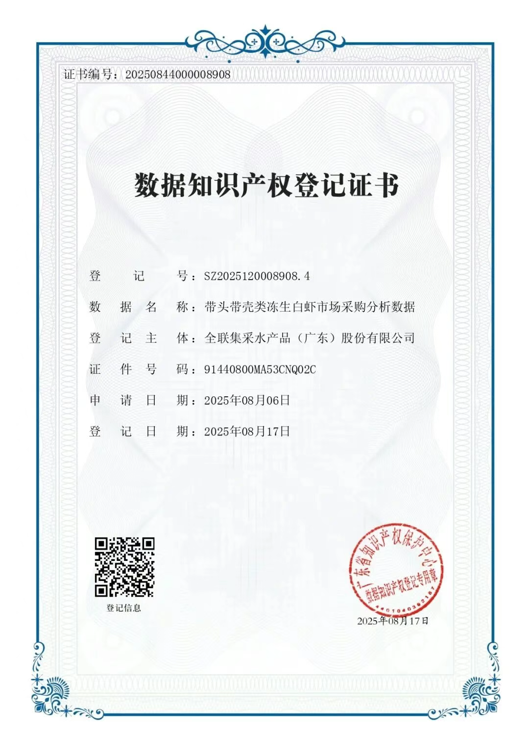 本次质押标的物为该公司两项高价值数据资产——“带头带壳冻生白虾市场采购分析数据”“全联集采水产品冻生白虾(去头带壳)订单分析数据”,覆盖全球白虾产业链市场需求、采购规律、价格走势及交易动态,具备极高商业与战略价值。